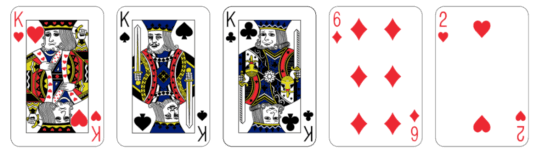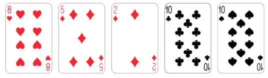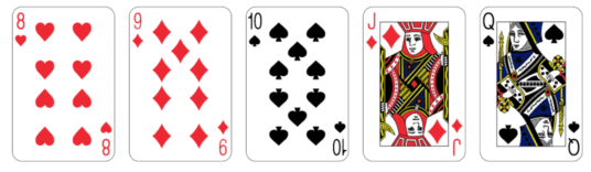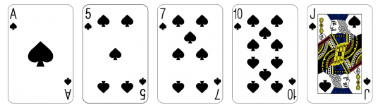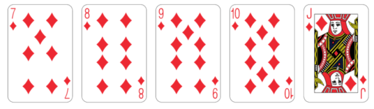 ‘Ασσος, Ρήγας, Ντάμα, Βαλές, 10 (ανώτερη κέντα ίδιου χρώματος). Πληρώνει 100 προς 1
